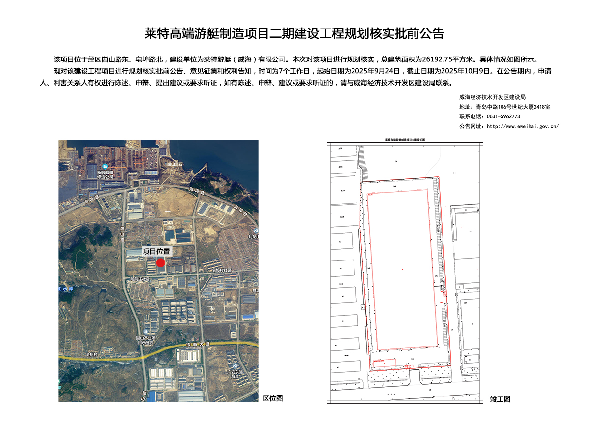 莱特高端游艇制造项目二期建设工程规划核实批前公告