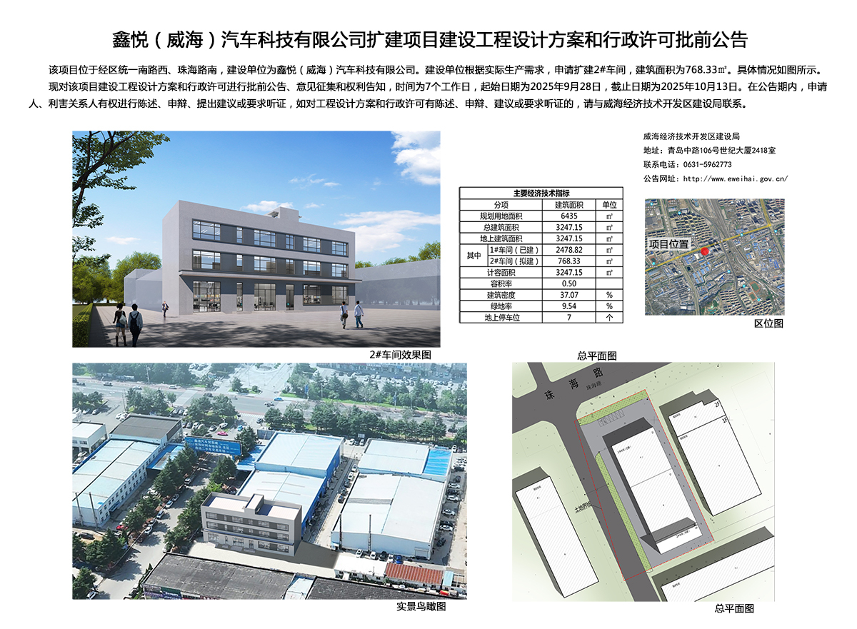 鑫悦(威海)汽车科技有限公司扩建项目建设工程设计方案和行政许可批前公告