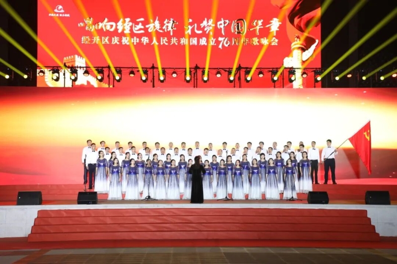 金秋放歌礼赞祖国,奋进经区唱响华章。为热烈庆祝中华人民共和国成立76周年,讴歌伟大祖国辉煌成就,展现经开区干部职工奋发有为的精神风貌,9月25日晚,“唱响经区旋律 礼赞中国华章”经开区庆祝中华人民共和国成立76周年歌咏会在智慧谷活力广场隆重举行,用歌声表达对祖国的深切热爱与美好祝福。区领导王清、王启、王役兵、邵明光、邱鲁金、赵扬、王文萍、谭波、于斌、王利辉、李庆龙出席活动。